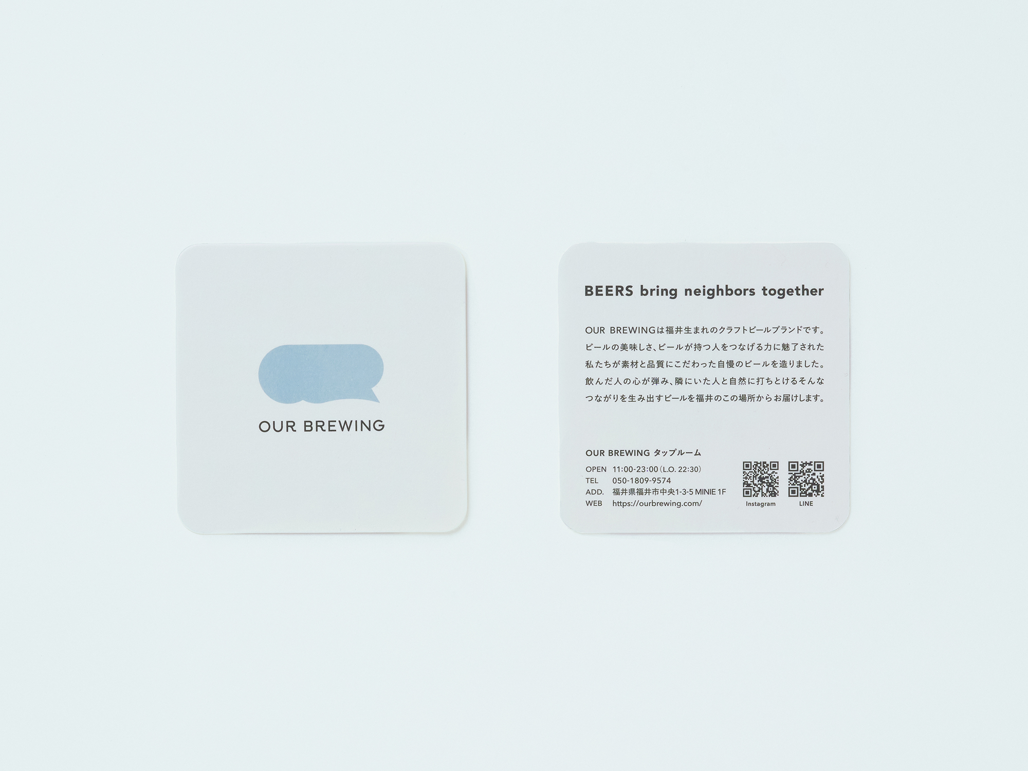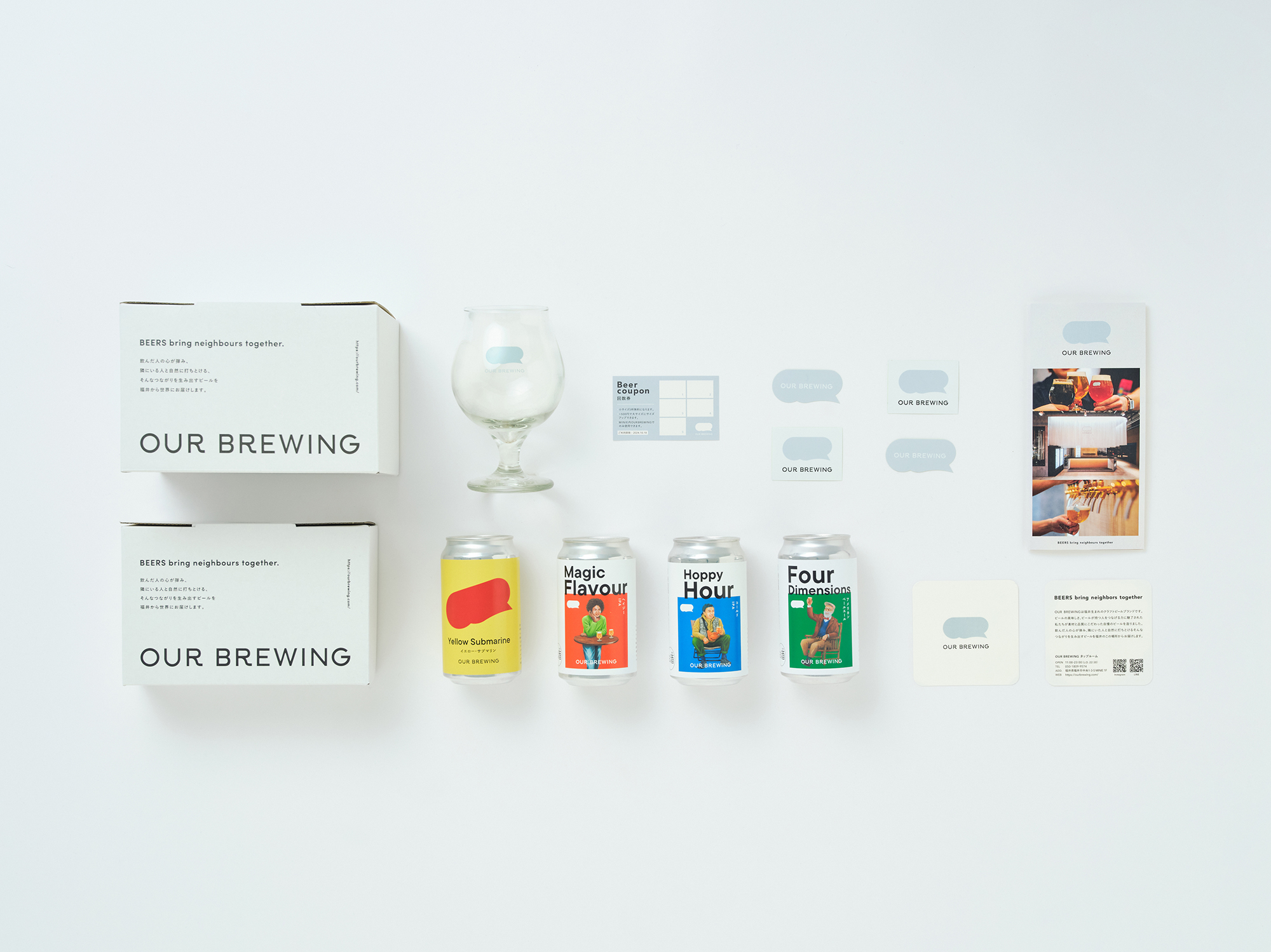 JR福井駅前の商業施設「MINIE」内に、オープンした福井発のクラフトビールブランド「OUR BREWING」のロゴ・サイン・ウェブ・パッケージなどグラフィックツール一式を担当しました。