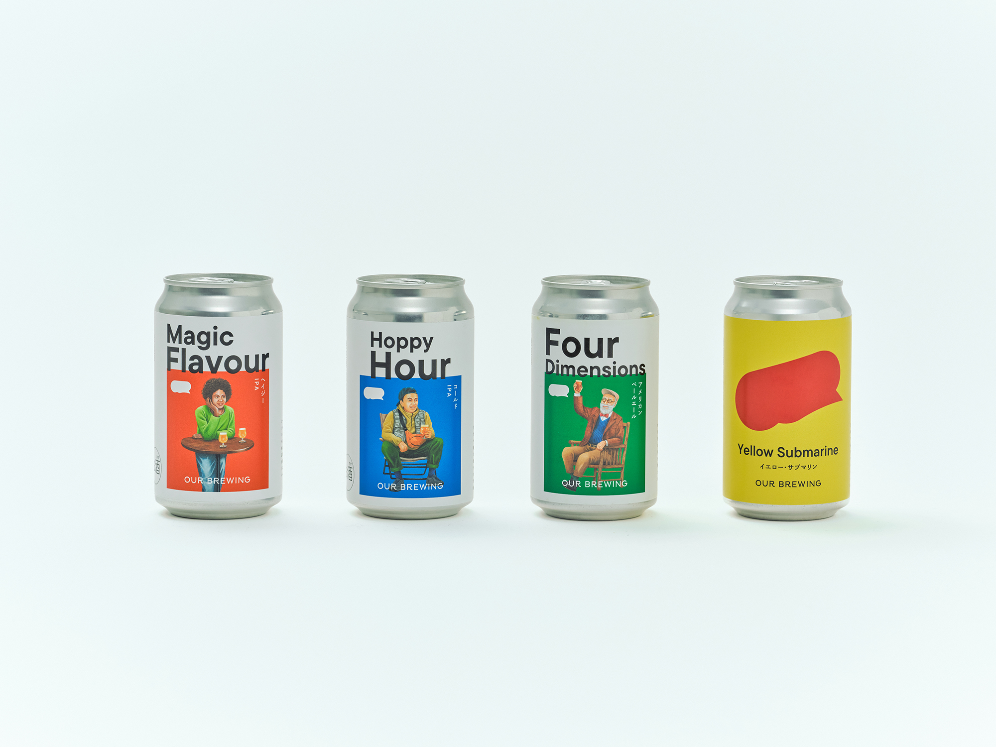 OUR BREWINGの理念である、クラフトビールを通じた人々とのつながりを大切にする想いを、吹き出しやビールの泡を思わせる柔らかなシルエットで表現しました。このシルエットをロゴに取り入れることで、クラフトビールを片手に賑やかに語り合う場面をイメージしています。