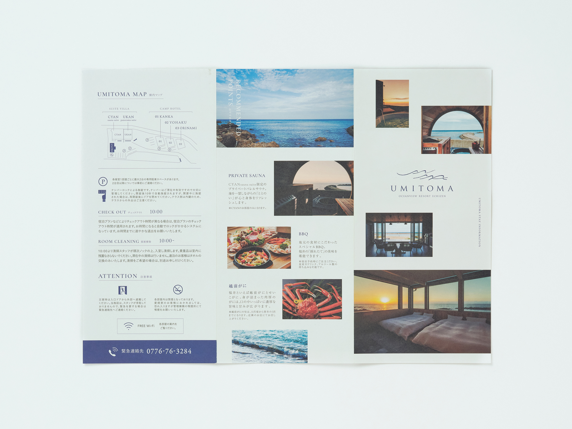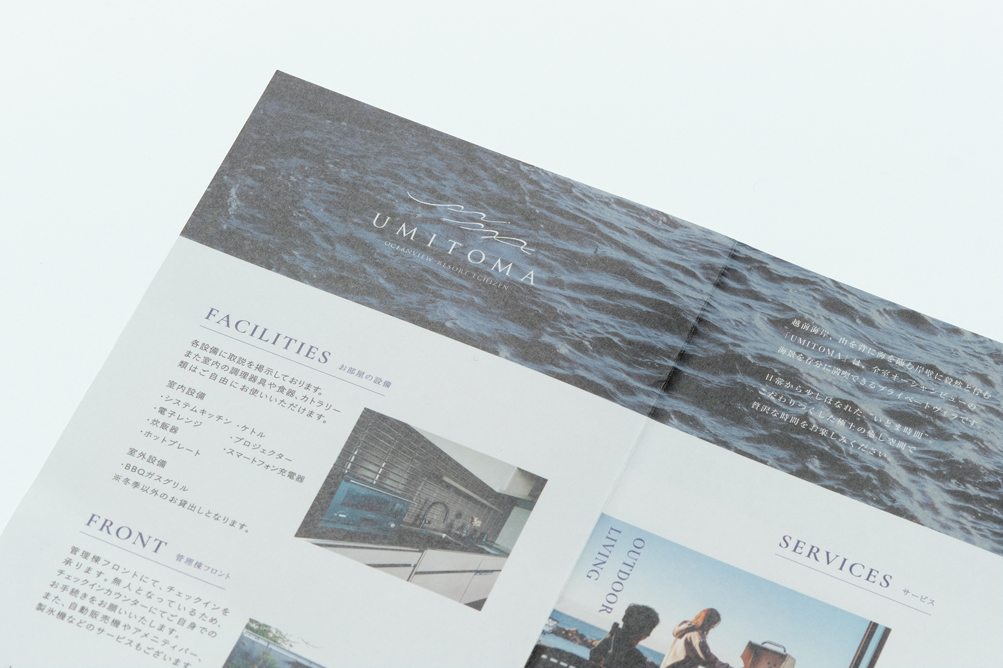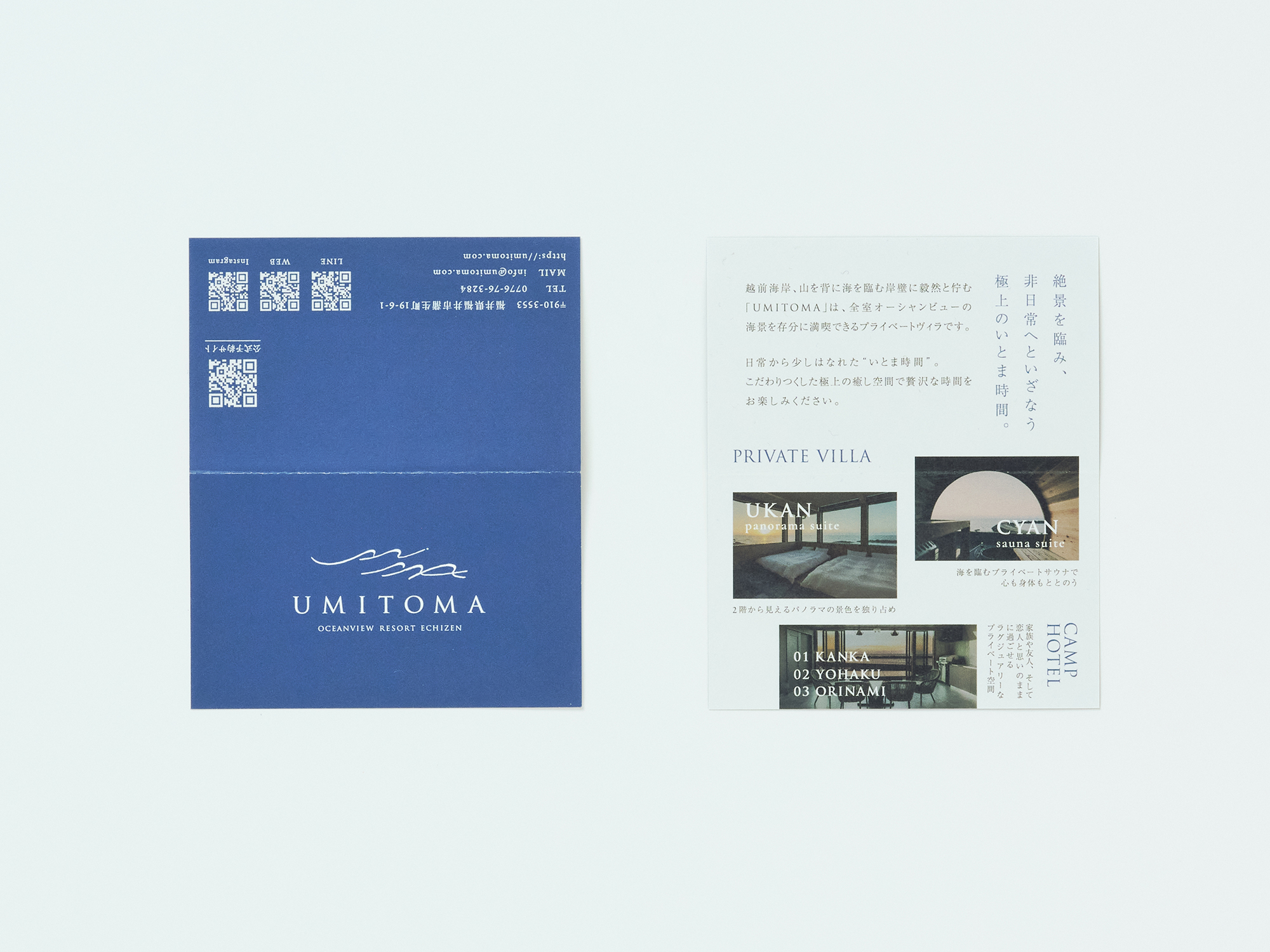 「UMITOMA OCENVIEW RESORT ECHIZEN」のネーミング・ロゴ・サイン・グラフィックツール一式・WEBサイトを担当させていただきました。